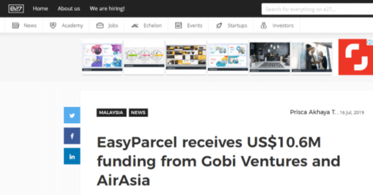 Air Asia’s Teleport, Gobi Partners Invest $10.6m In Delivery Startup EasyParcel Read More » Whana July 31, 2019