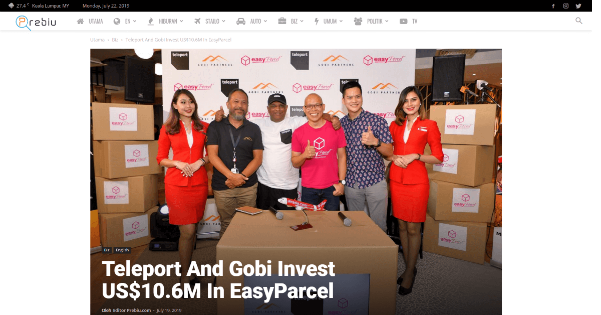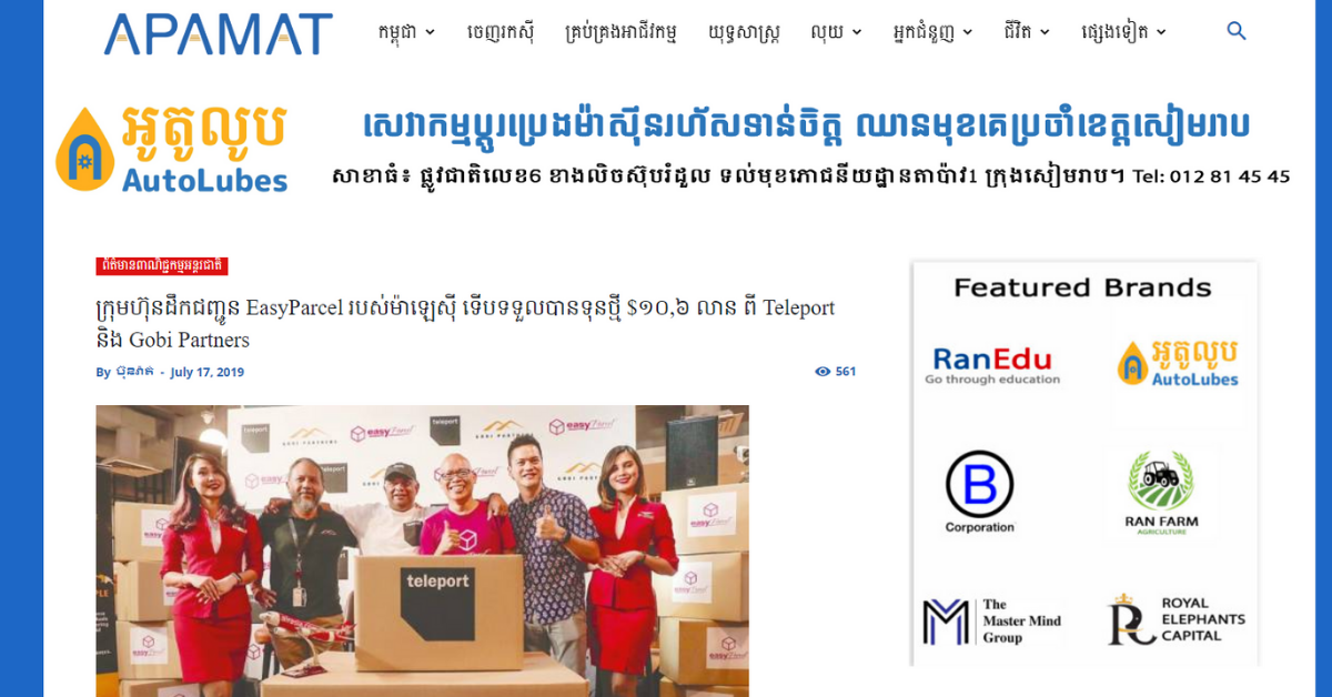 ក្រុមហ៊ុនដឹកជញ្ជូន EasyParcel របស់ម៉ាឡេស៉ី ទើបទទួលបានទុនថ្មី $១០,៦ លាន ពី Teleport និង Gobi Partners Read More » Whana July 31, 2019