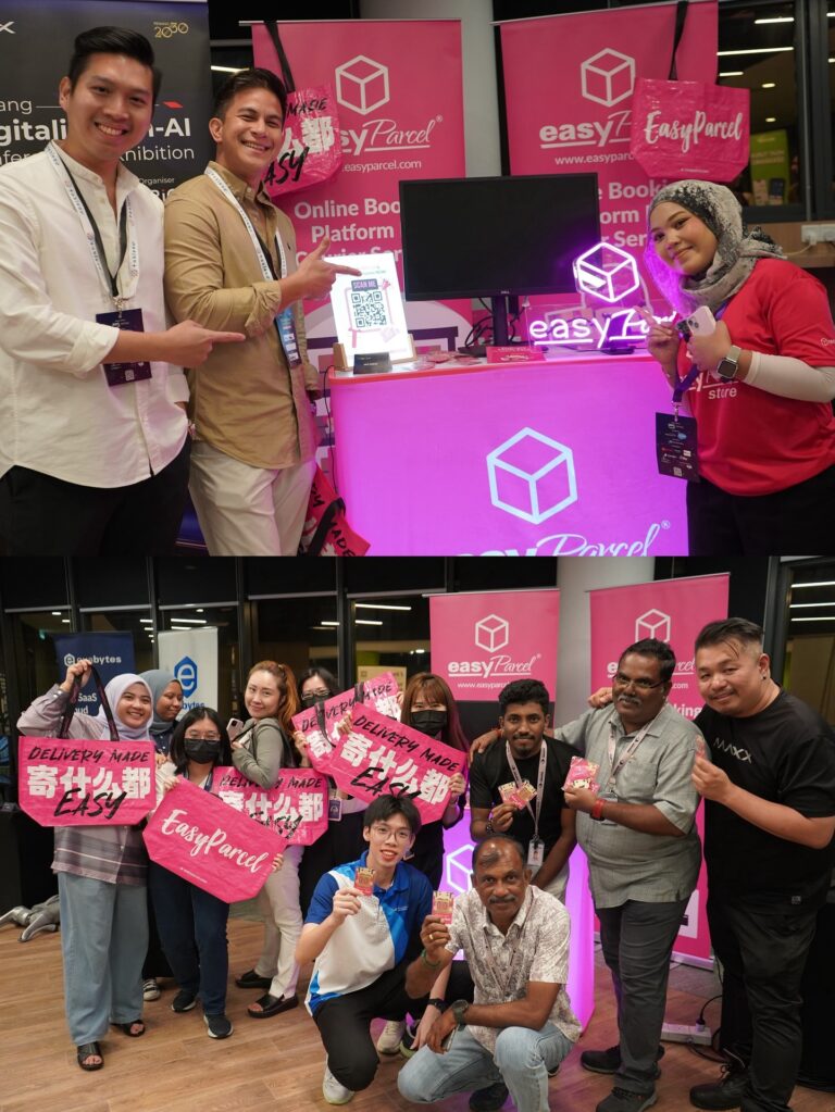 - EasyParcel booth engagement with founders, investors, and tech builders