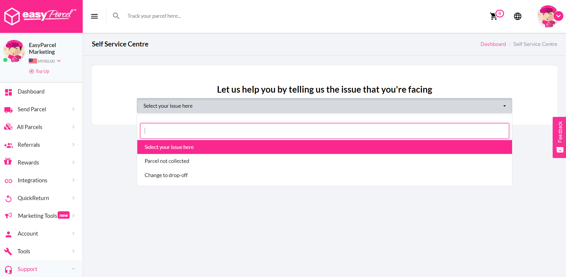 We’ve made shipment management easier with self service centre. Directly select drop off point, remind courier and rebook to a new courier is up for you.