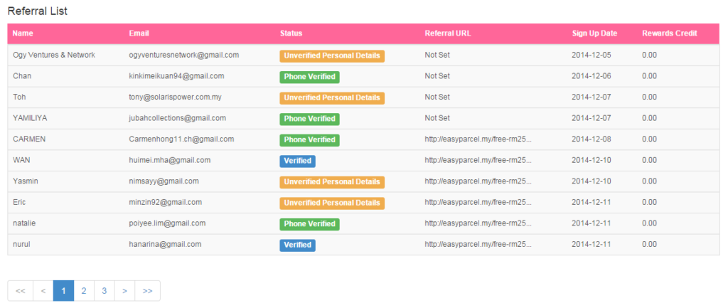 All account’s referral are sorted in pages to provide a user-friendly environment.