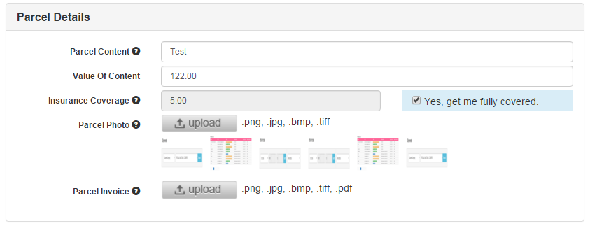 Now you can upload all 6 of your pictures one shot for parcel photo and parcel invoice when you purchase additional insurance.