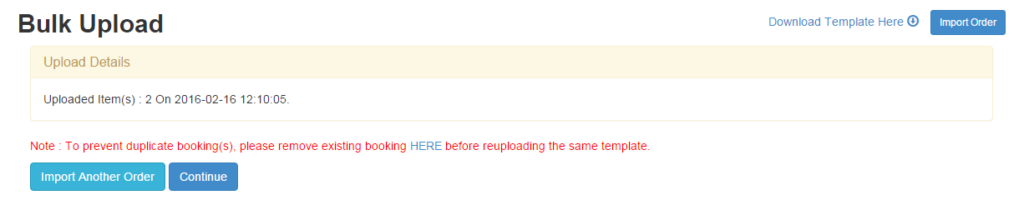 For Bulk Upload features, detected duplicate bookings, message will be prompted to remind user regarding it.