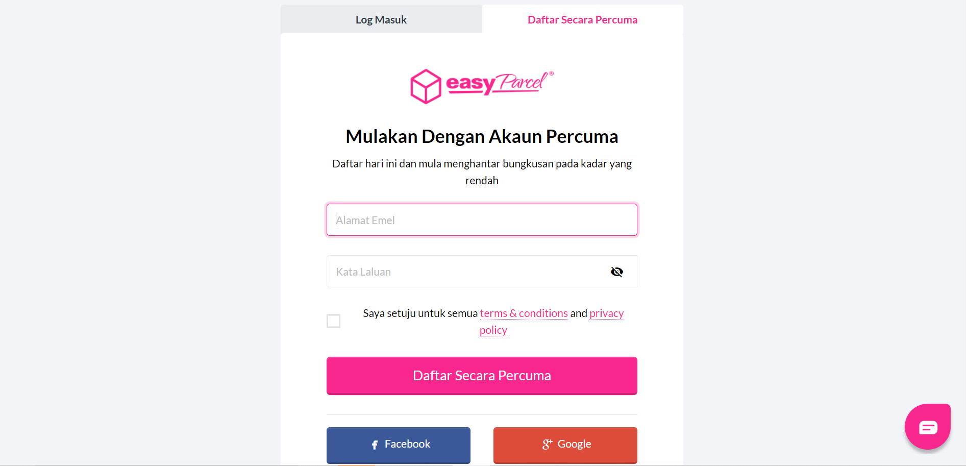 Langkah 1: Daftar/ Log Masuk  di easyparcel.com