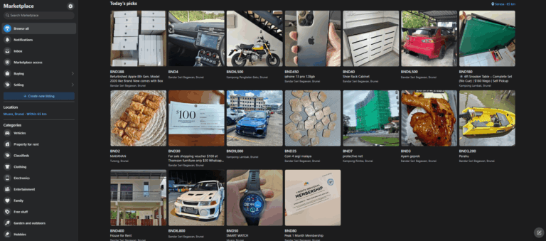 Facebook Marketplace is chosen because it’s highly accessible and widely used in Brunei, making it ideal for sellers who want quick local sales with minimal setup. Its free listing system and social integration allow sellers to tap into community trust and engage buyers directly.