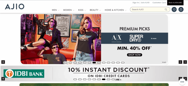 Ajio is a fast-growing Indian platform focused on fashion and lifestyle, particularly trendy, affordable clothing and accessories. Sellers benefit from its youthful brand image, fresh collections, and strong appeal to style-conscious shoppers, making it ideal for fashion-oriented businesses.
