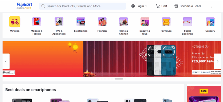 Flipkart is one of India’s most popular e-commerce platforms, especially strong in electronics, fashion, and everyday essentials. Sellers benefit from its massive user base, strong brand reputation, and major sale events like Big Billion Days, which drive huge traffic and sales spikes.