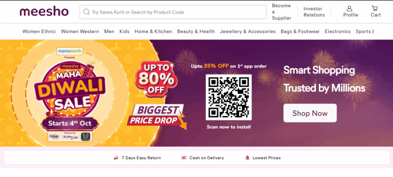 Meesho is one of India’s fastest-growing e-commerce platforms, especially popular for reselling and social commerce. It allows individuals and small businesses to sell products directly through WhatsApp, Facebook, and Instagram, making it easy to start with little or no investment.