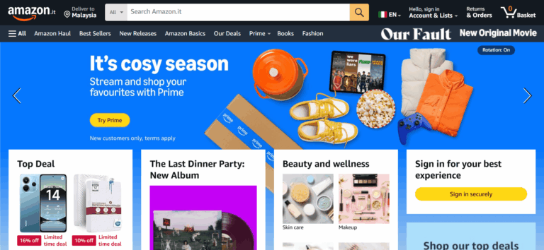 Amazon dominates Italy’s e-commerce market with its extensive product range, Prime delivery, and trusted reputation. Sellers choose Amazon for its massive traffic, reliable logistics, and access to both local and international buyers, making it ideal for scaling quickly.