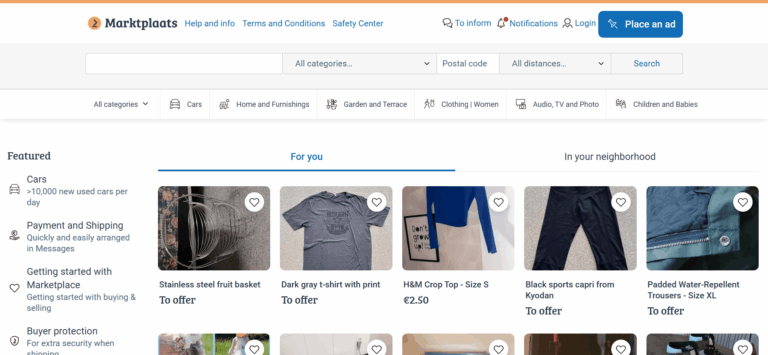 Marktplaats, owned by eBay, is the leading platform for second-hand goods and local transactions in the Netherlands. Sellers choose it for its massive user base, low listing costs, and ability to connect directly with nearby buyers, making it ideal for small businesses and individuals.