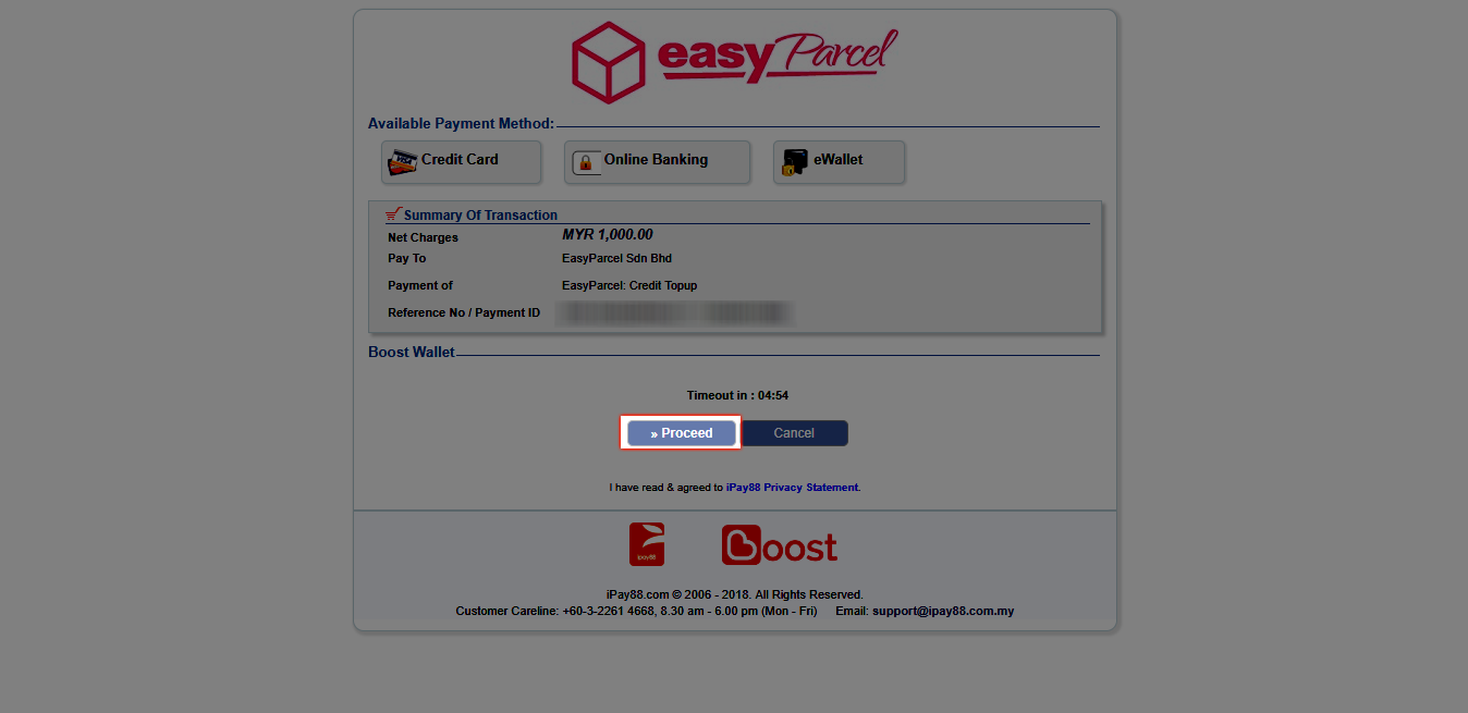 STEP 3: Confirm your top up details and click on “Proceed” to continue your payment.