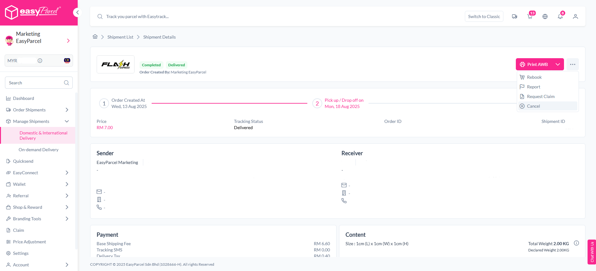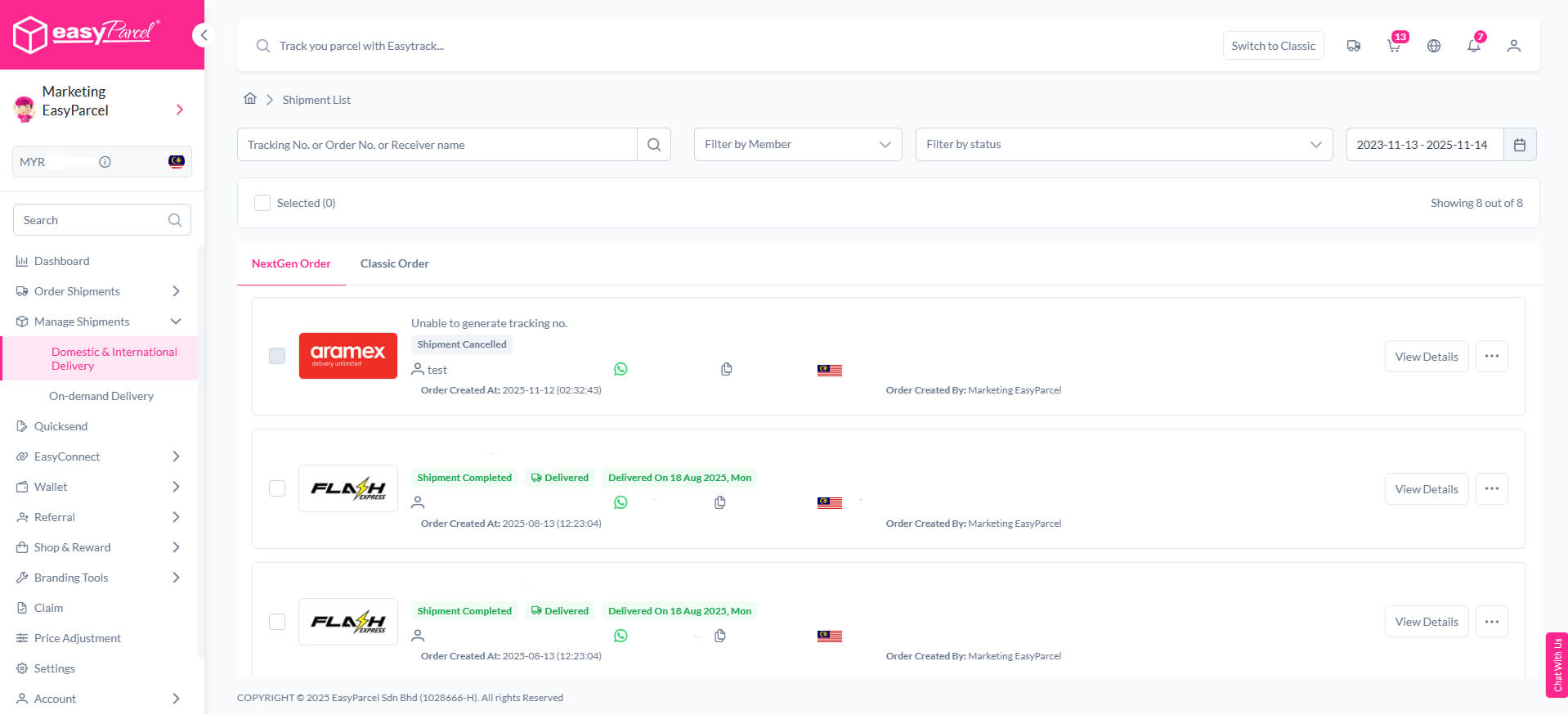 Managing your deliveries has never been easier! With EasyParcel Next Gen, you can now track, edit, and organize all your Domestic, International, and On-Demand shipments in one powerful dashboard.