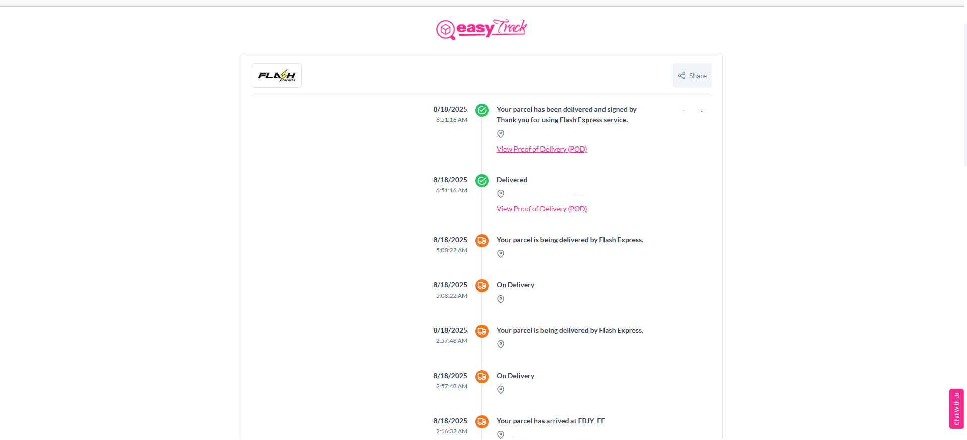 • Click on the Tracking ID or Courier Logo to view real-time updates.