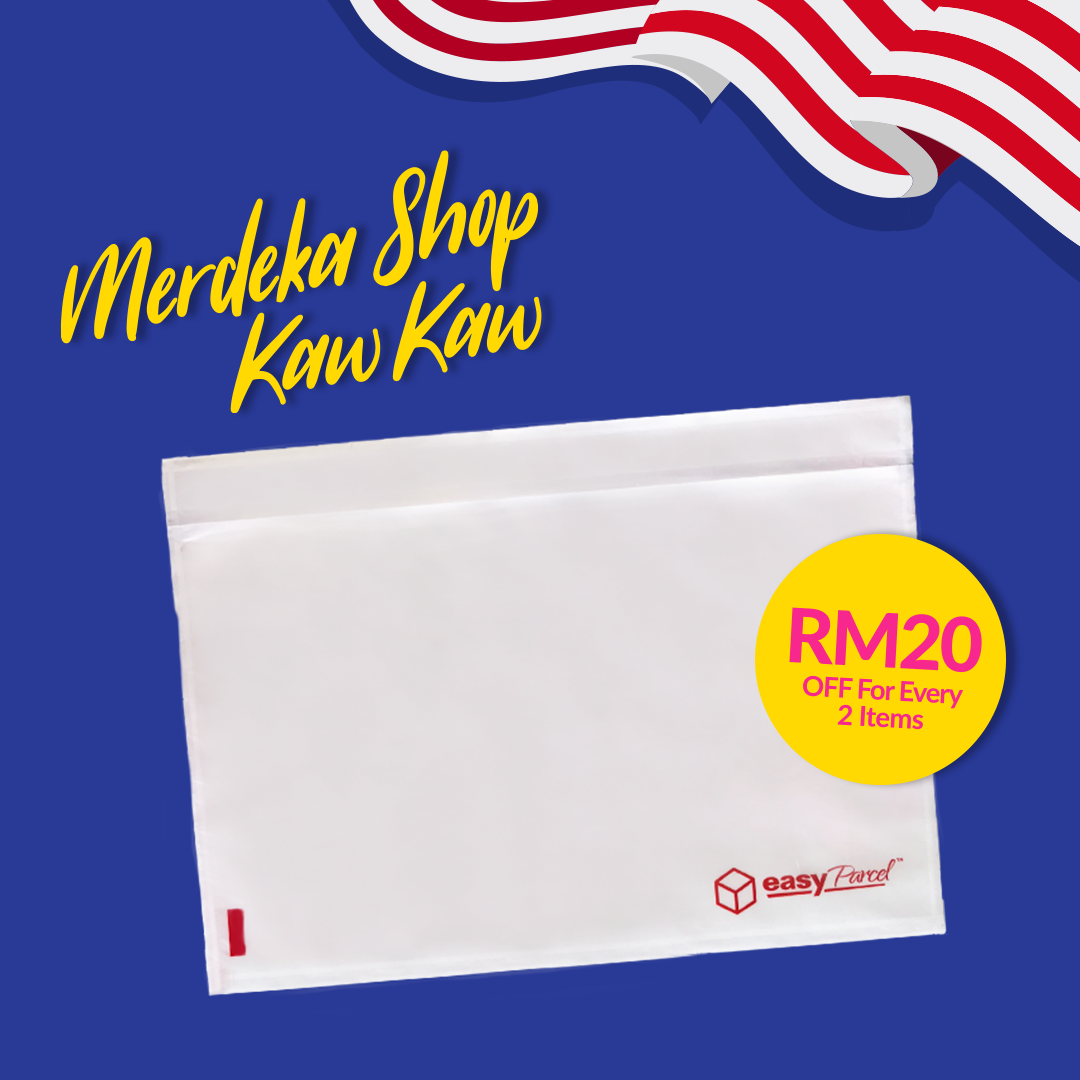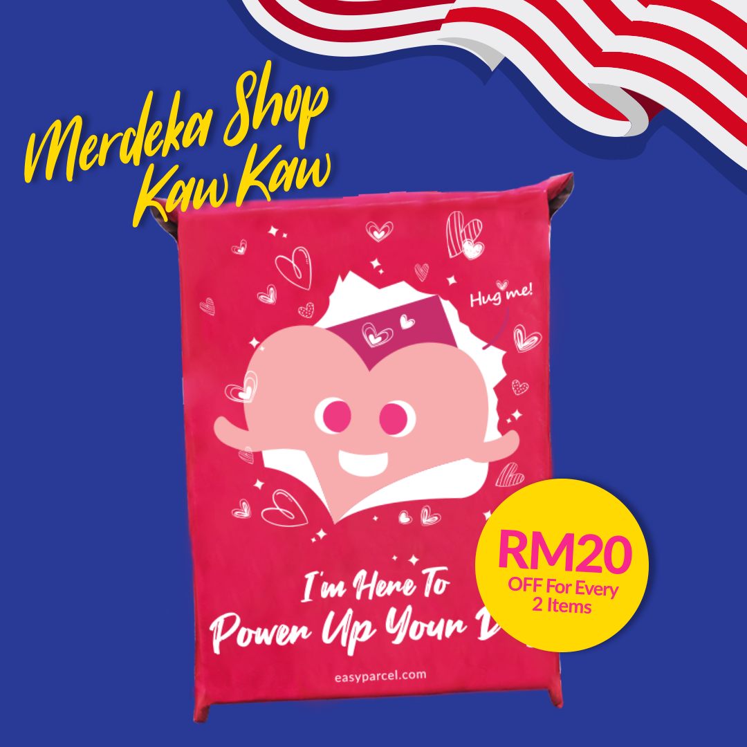 Don’t let go of the golden opportunity to stock up packaging materials, such as EasyParcel pouch, limited edition pinkish flyers in L and XL size with extra RM20 OFF for every 2 selected items purchased in the store.