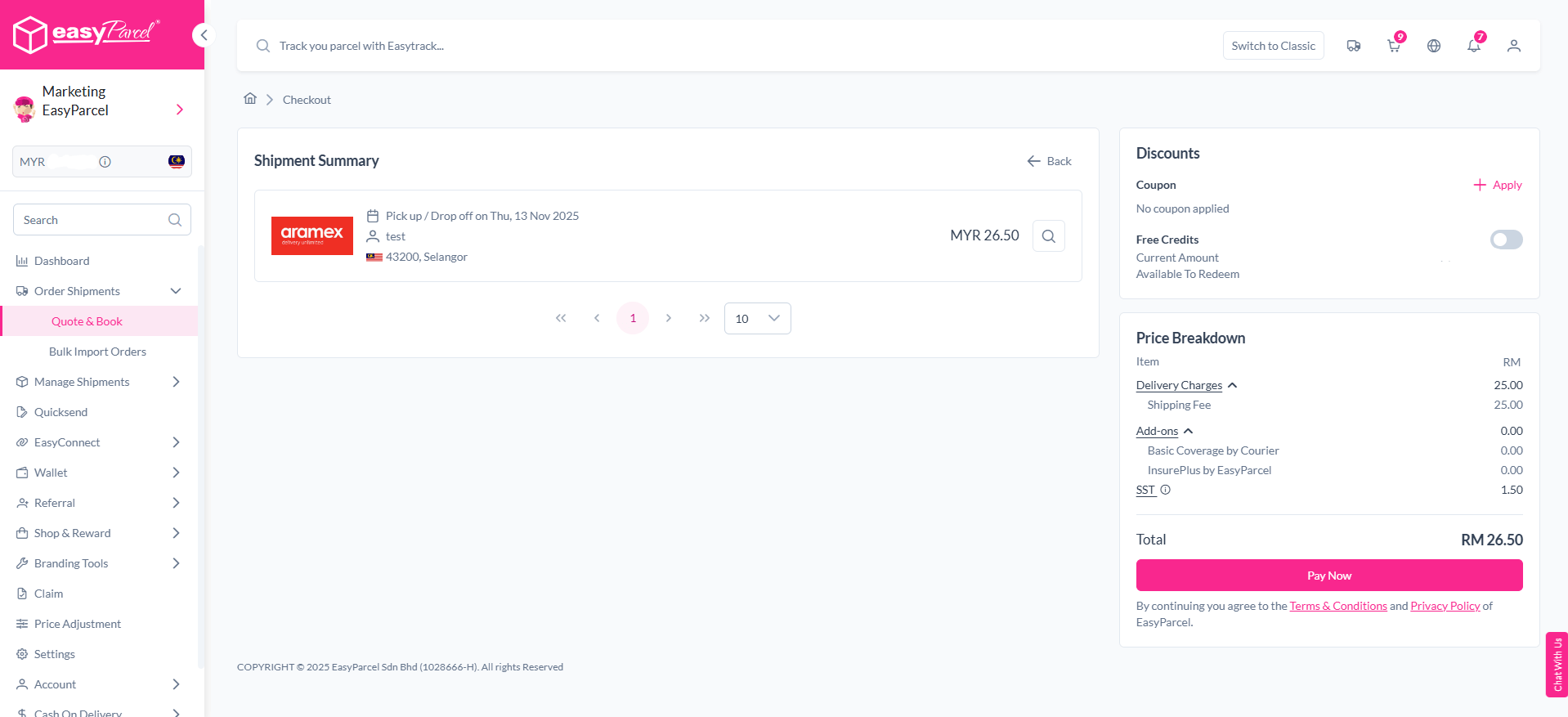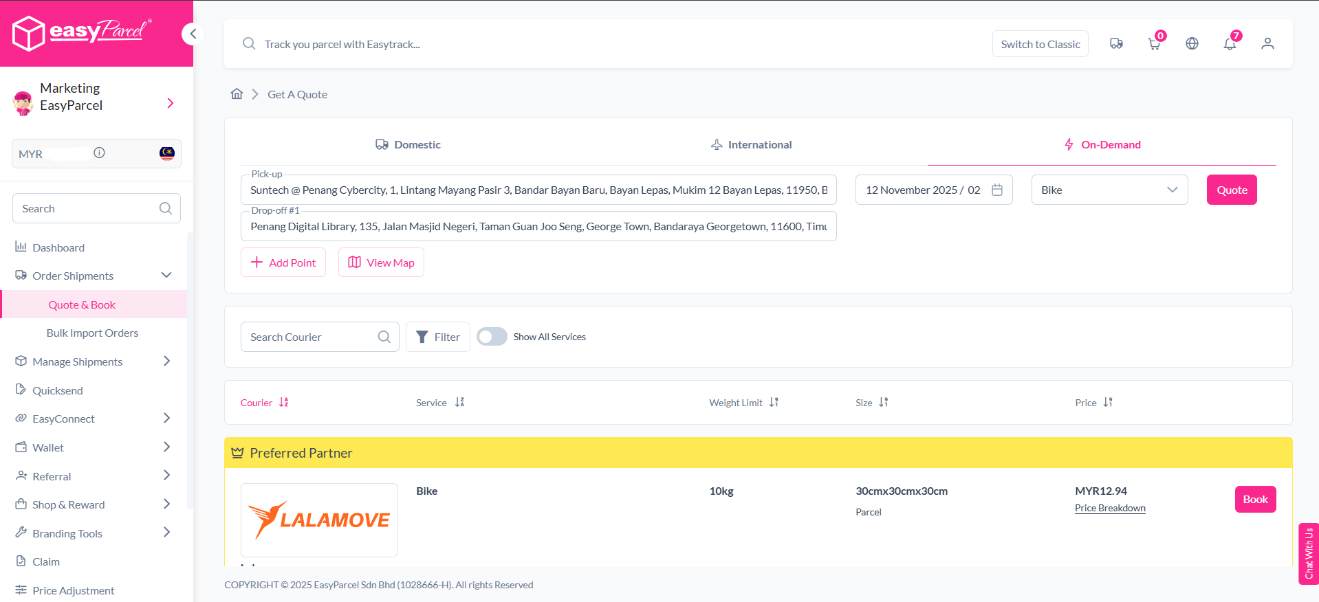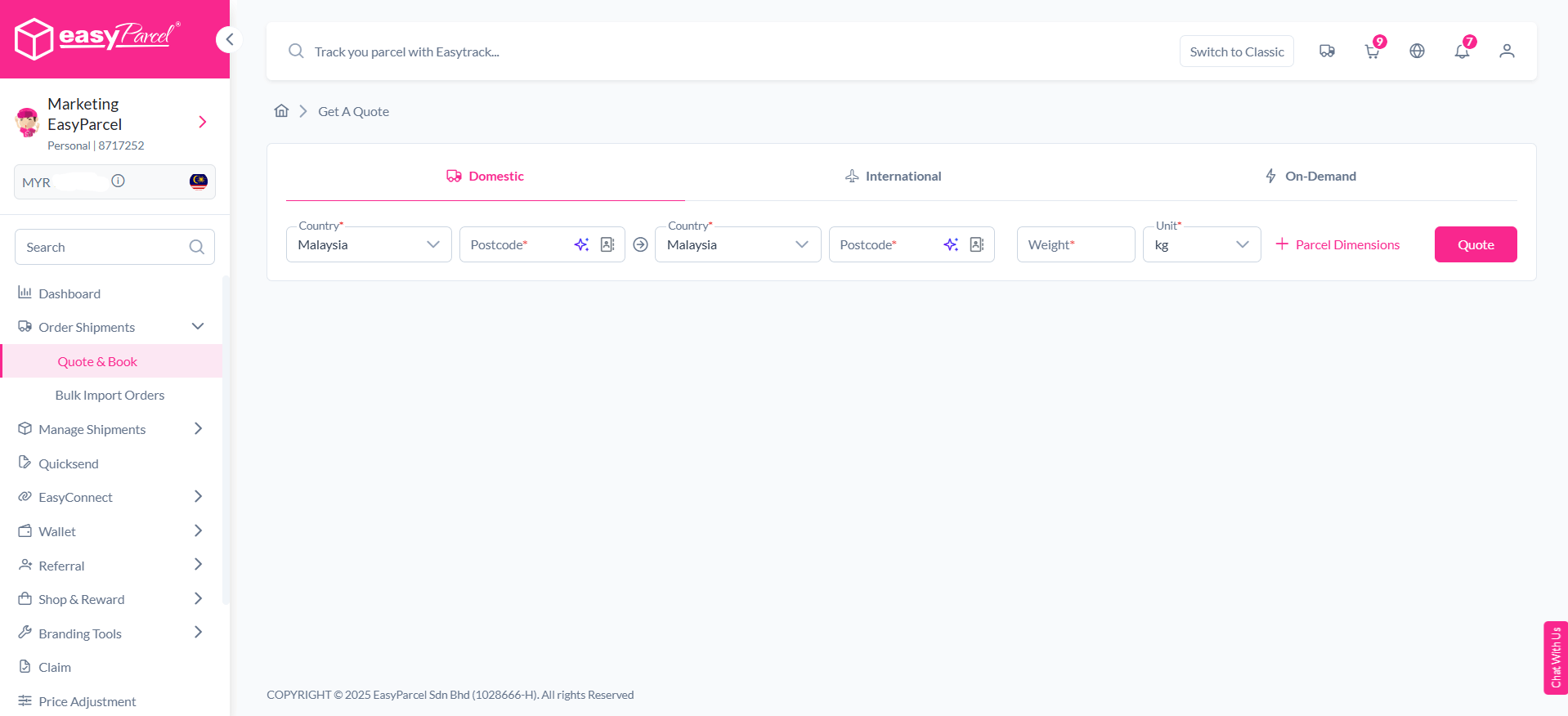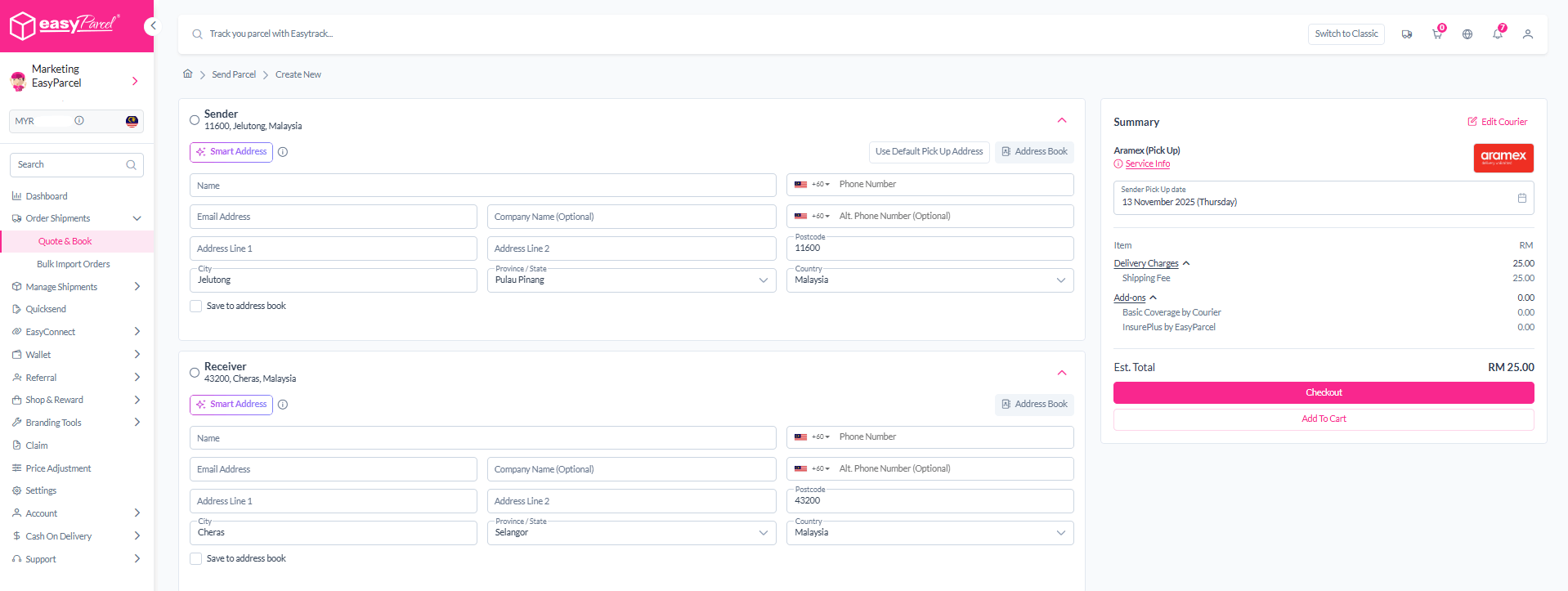 This guide will walk you through each step of sending a parcel using the Quote & Book feature on EasyParcel Next Gen.