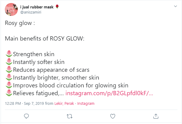 All you need to do is not too pushy in selling your products. For example, “i jual rubber mask” are not just selling products directly on Twitter. They decided to show their target audience about the benefits of using their mask, instead of shouting “buy now”.