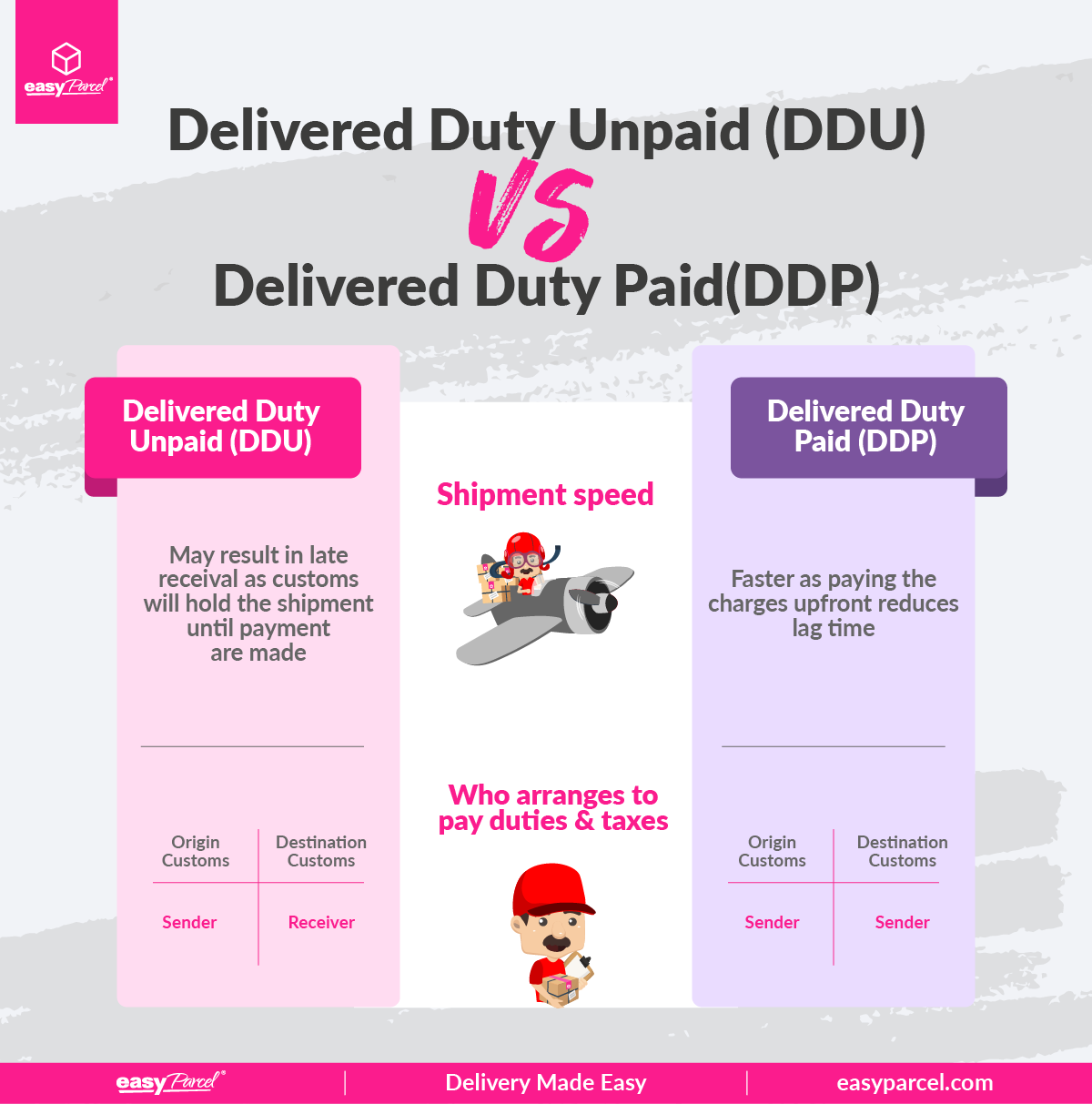 🤔However, when shipping internationally, there might be import duties and taxes imposed on the goods. You might also come across the terms Delivered Duty Unpaid (DDU) and Delivered Duty Paid (DDP) when booking a shipment. Here at EasyParcel, we provide the DDP feature to give you more options to ship easily.✈️