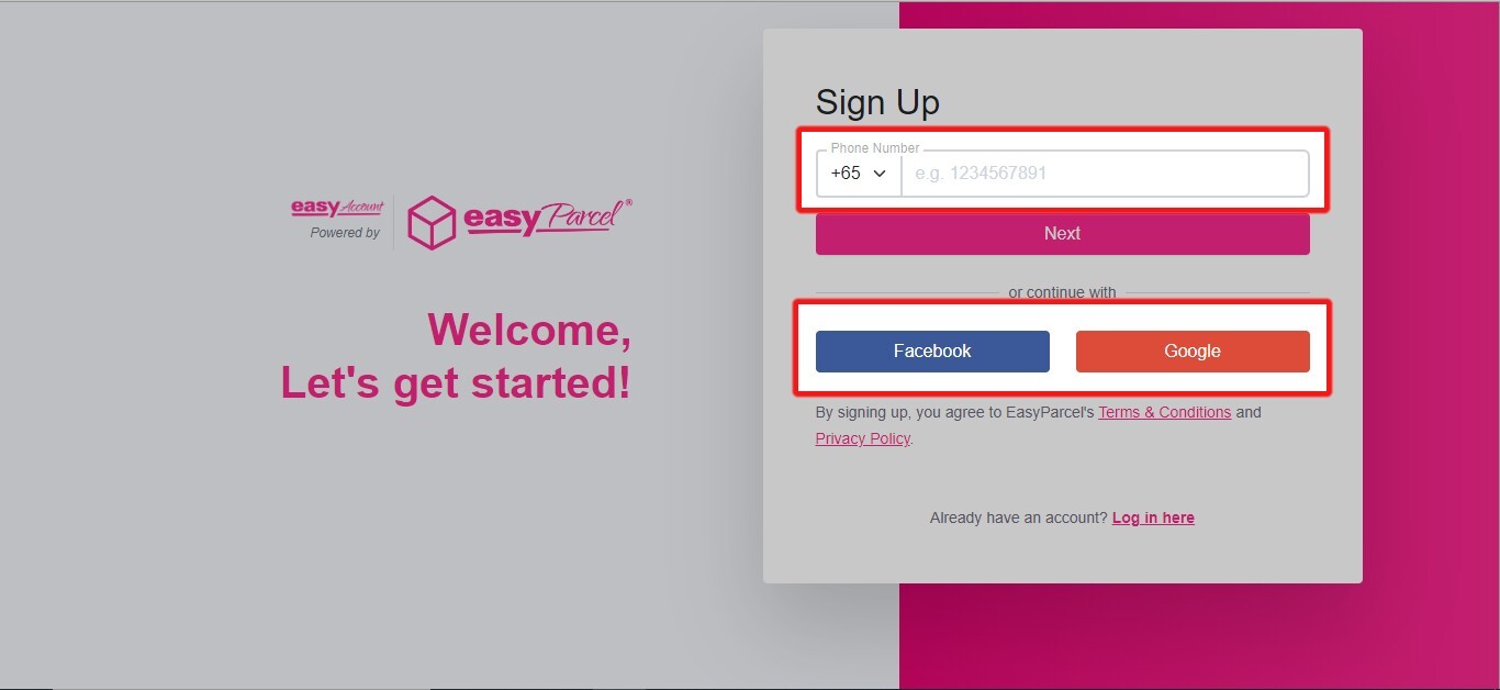 Step 1: Sign up for a free account and receive S$6 worth of coupons to ease your international shipment booking.