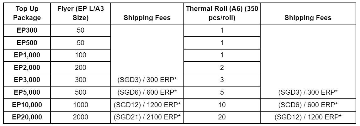 For every top up of EP299  or above, you will be able to claim the limited edition polymailer or thermal rolls for FREE. Simply request here once top up done. There are 2 options available to choose from: