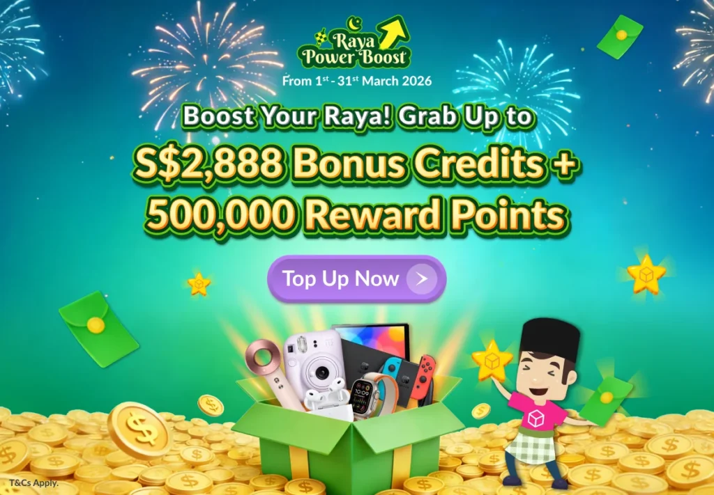 Celebrate the festive season with rewards designed to help your business grow stronger and bigger this Raya! 💚✨ With the Raya Power Boost, when you top up, you’ll earn up to S$2,888 Bonus Credits and 500,000 Reward Points, depending on your top-up amount. Don’t miss out — this exclusive Raya Power Boost runs only until 31st March 2026, 11:59PM!