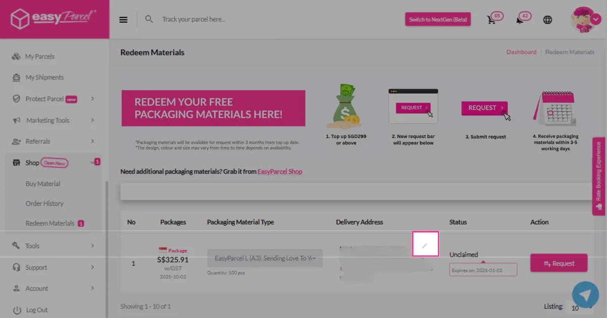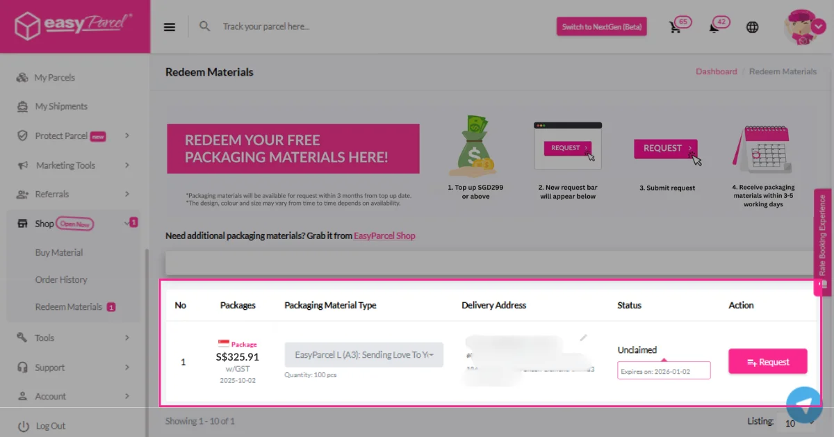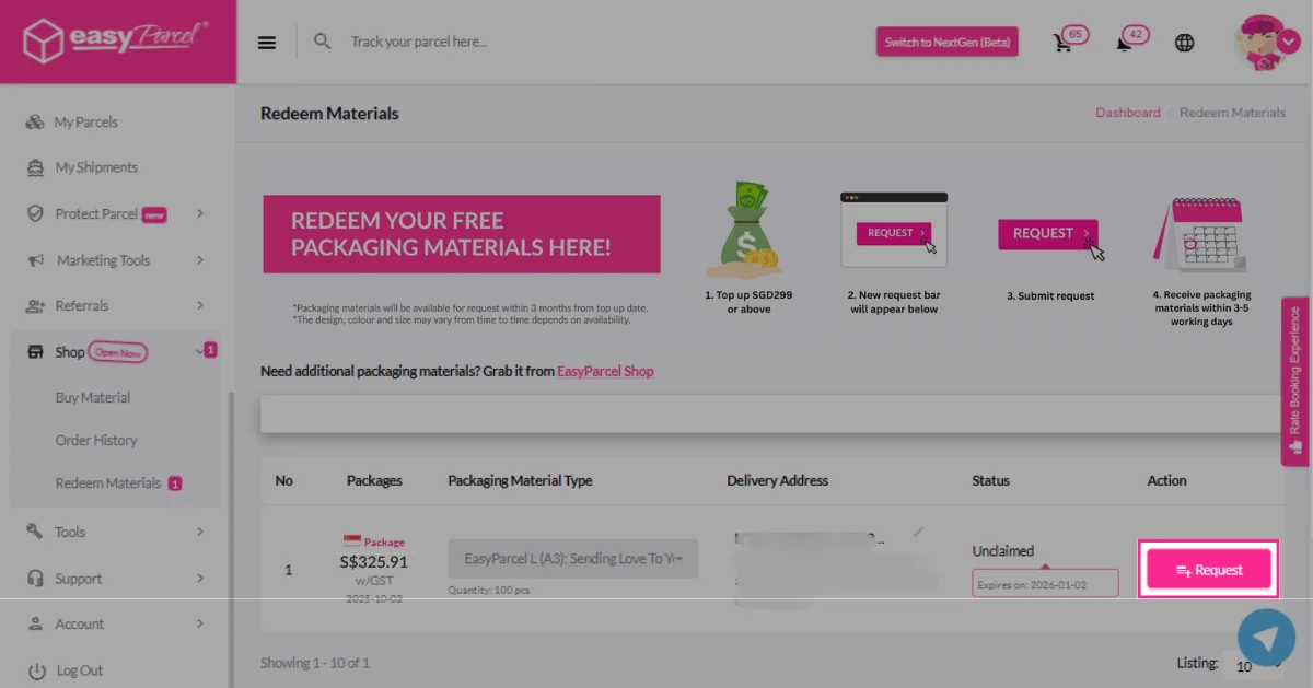 Have you ever wanted to request our exclusive packaging materials? You can now do so easily with our new Packaging Material Request System. Check out the steps below as we will guide you from the beginning to end:-