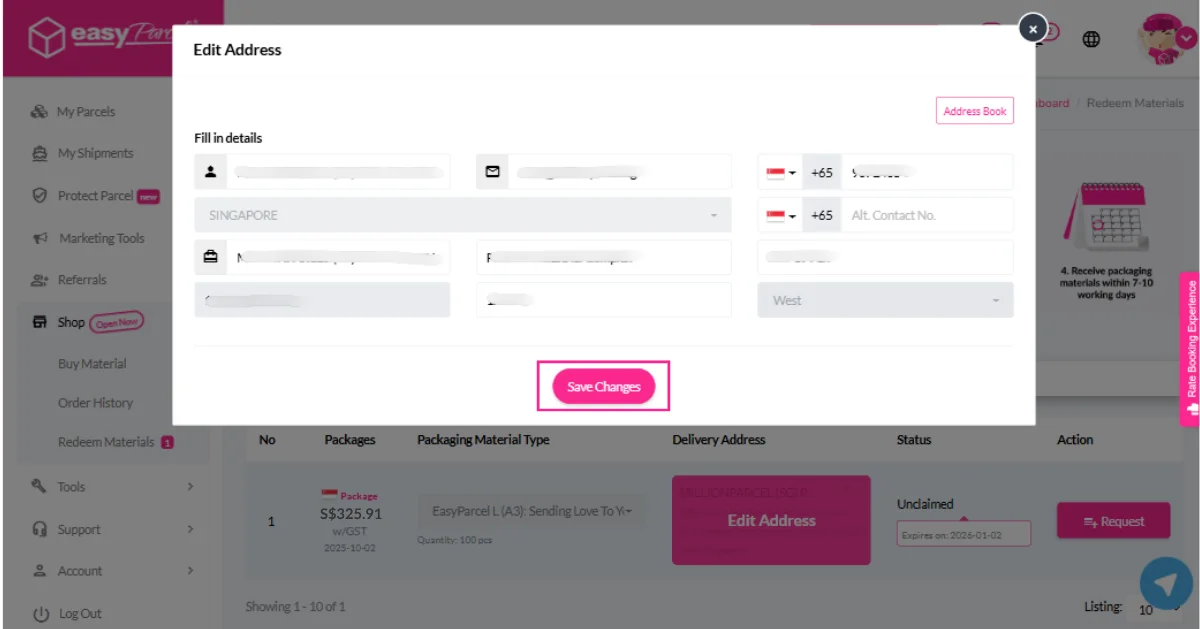 STEP 4: A pop-up window will appear. Update your address details and click the “Save Changes” button to save the information.