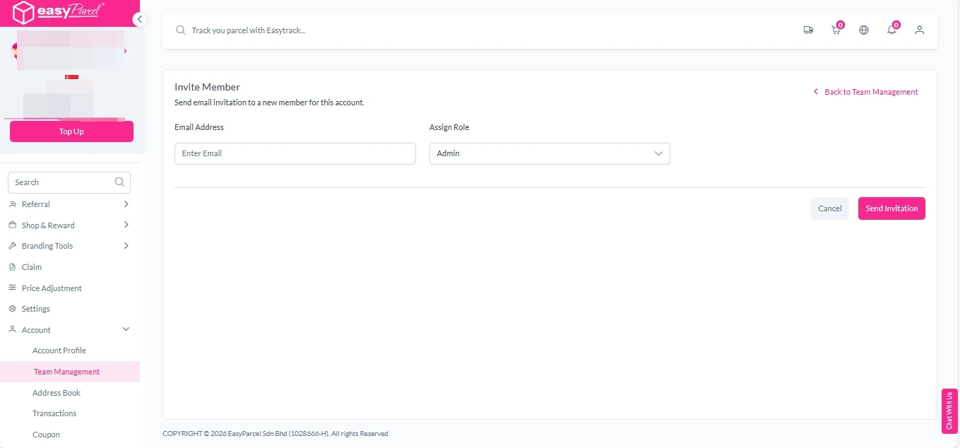 EasyParcel Next Gen Team Management: One Account, Multiple Members
